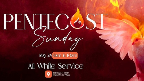 Mark your calendars for Pentecost Sunday on May 24th at our 8:00 AM and 10:00 AM services. Pentecost is a reminder of when the Holy Spirit empowered the Church with boldness, unity, and purpose. Come dressed in all white, expecting God to move in a powerful way.